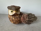 Vintage Hand Made Owl Bird Figure Made From Painted Tree Bark Glass Eyes 10 X 5
