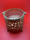 Vintage Ornate Gold Ormolu Filigree Jewelry Trinket Box With Beveled Glass Legs