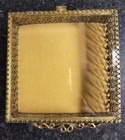 Vintage Ormolu Gold Filigree Jewelry Casket With A Beveled Glass Lid. 4 Inch