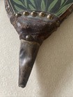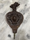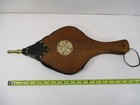 Vintage Antique Fireplace Bellows Wood Brass Leather Tack Hand Carved Shield