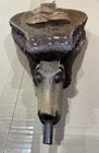Antique Rare Canine Head Leather & Hand Carved Wood Fireplace Bellows