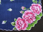 Vintage Cotton Hankies Handkerchief Rose Floral Design Country Cottage Core Blue