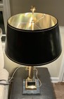 Vintage French Bouillotte Brass Table Lamp W/original Tole Shade By Horn&brannen