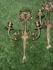 Vintage French Brass Ornate Wall Sconce Double Arm Cast Brass Candleholder Euc