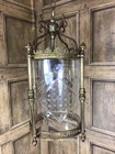 Vintage French Rococo Brass Lantern With Engraved Cylindrical Glass