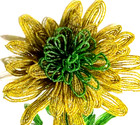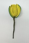 Vintage French Glass Beaded Flowers Yellow Tulips & Green Leaves 3 Stems 4in