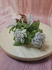 Vintage French Glass Beaded Flowers Bouquet Christmas Ornament 6" Handmade