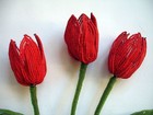 Vintage French Glass Seed Bead Red Emperor Tulips 3 Blooms 4 Leaves 1 Stem
