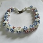 Vintage French Glass Seed Beaded Multicolor Flowers In Porcelain Basket Chain