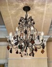 Vintage French Crystal Beaded Chandelier Murano Art Glass Fruit Grape 8 Light A4