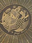 Vintage Mid-century Georges Briard Gold Glass Bird & Fish Tray 7.75” Square