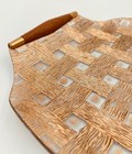 Vintage Georges Briard Gold Basketweave Glass Serving Tray W/ Wood/brass Handles