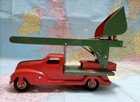 Vintage 1930s Gescha Red & Silver Plane Tin Litho Friction Airplane - Penny Toy