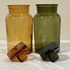 2 Vtg Glass Apothecary Storage Jars-glass Lid Tab Handle-olive Green,amber Brown