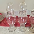 Vtg Apothecary Jars W/ Lids Clear Glass Bubble Lid Pedestal 8"-8 1/2" Set Of 4