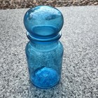 Vintage Belgian Glass Apothecary Storage Jar W/bubble Top Blue Glass Euc