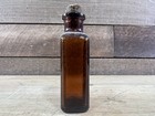 Vintage Amber Brown Square Glass Bottle 4"