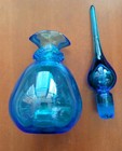 Vintage Blue Glass Bubble Decanter Bottle With Stopper