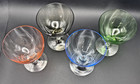 Vtg Cocktail Sherbet Stemmed Pedestal Glasses Blue Green Pink Smoke 4” Set Of 4