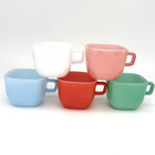 Vtg Set Of 5 Glasbake Square Multicolor Pastel Milk Glass Mugs Cups