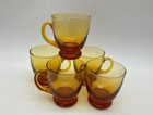 Set Of 5 Vintage Amber Handblown Glass Punch Cup Footed Coffee Tea Cup Mug