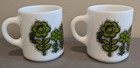 Vintage Milk Glass Green Retro Boho Floral Flowers Mug Cup - Set Of 2