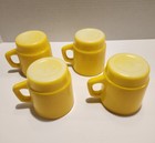 Vintage Anchor Hocking Yellow & White Milk Glass Mugs Set Of 4 Coffee Cups ~ Euc