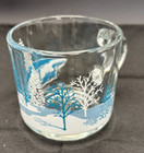 Vintage Anchor Hocking Winter Landscape Coffee Cup Set Of 4 Mug Trees Blue White