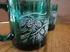 Vintage Emerald Green Glass Mugs With White Pinecones Usa Set Of 3