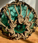 Vintage Japanese Large Glass Fishing Float Buoy Ball Net Green 13"h
