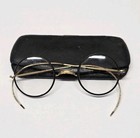 Vtg Windsor Wire Rim Saddle Bridge Round Celluloid 10k Gold Eyeglasses & Case