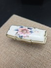 Vintage Floral Lipstick Holder With Mirror – Porcelain Inlay