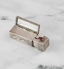 Art Nouveau Floral Etched Silver & Red Cabochon Vintage Lipstick Holder W/mirror