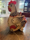 Vintage Fisher Price Cackling Hen Wood Pull Toy #120 1950’s Working