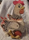 Looking for Vintage Golden Cackling Hen Pull Toy Fisher?