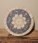 Vintage Grannycore Round Woven Sewing Basket Quilted Pillow Top W/ Accessories