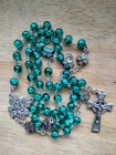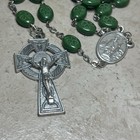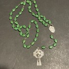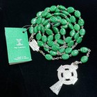 Irish Catholic Rosary Green Shamrock Glass Beads Celtic Erin Crucifix Ireland