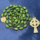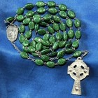 Irish Ireland Celtic Cross Shamrock Green Bead Vintage Rosary Excellent