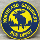 Vintage Northland Greyhound Bus Depot Porcelain Sign Gas Station Moose Oil