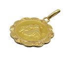 18k Gold Vintage Shiny Angel With Baby Wavy Border Pendant Gp216
