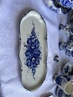 Vintage Russian Gzhel Hand Painted Rectangular Floral Blue & White Platter