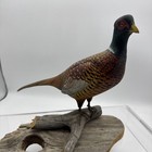 Vintage Hand Carved And Painted Wooden Ring Neck Pheasant 12” Long, Signed