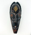 Small Vintage Hand Carved Wood Tribal Mask African Wooden With Metal Engraving
