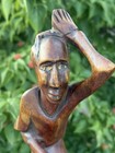 Vintage Hand Carved Wood African Tribal Man W/horn 14" Tall Sculpture Ghana