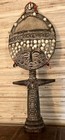 Vintage Ghana African Hand Carved Wood Mask With Embossed Metal Tin