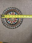 Vintage Turkish Geometric Hand Etched Painted Copper Wall Hanging Plate 7.5"