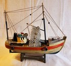 Vintage Handmade Wood Fishing Boat Model - Rustic Folk Art Trawler Trawler 11"