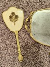 Vtg Brass Gold-tone Ornate Vanity Dresser Hand Mirror Brush Comb Stylebuilt Set