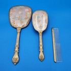 Vanity Hand Mirror Brush Comb Set Gold Tone Hollywood Regency 3 Pc Floral Back