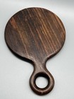 Vintage Mcm Olive Wood Framed Oval Hand Held Beveled Mirror